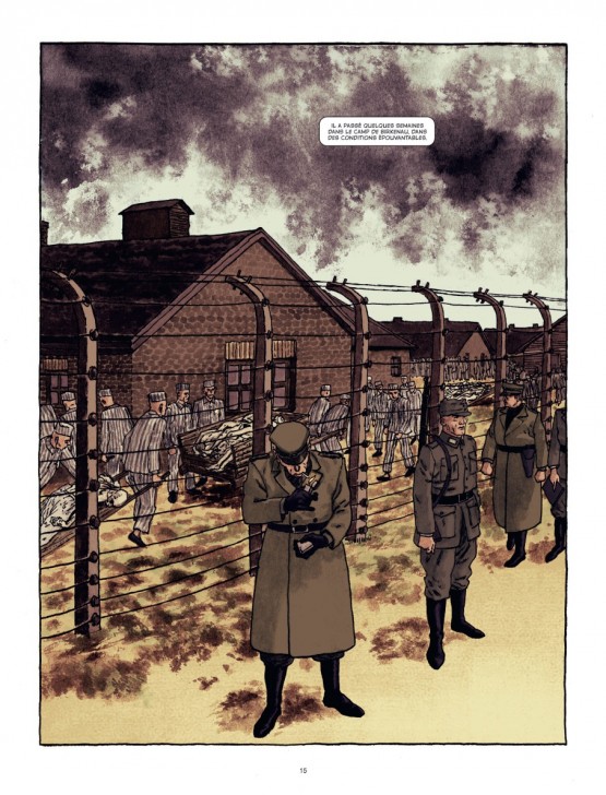 Le travail graphique de Rafael Ortiz se distingue par sa sobriété et son efficacité. Les visages sont expressifs, les décors parfois glaçants, mais toujours au service du récit. La reconstitution de certains lieux comme Drancy et Auschwitz-Birkenau est particulièrement soignée. Les couleurs de Hiroyuki Ooshima et Florian Soussigné, dans des tons sombres et sobres, restituent avec justesse l’atmosphère du récit.