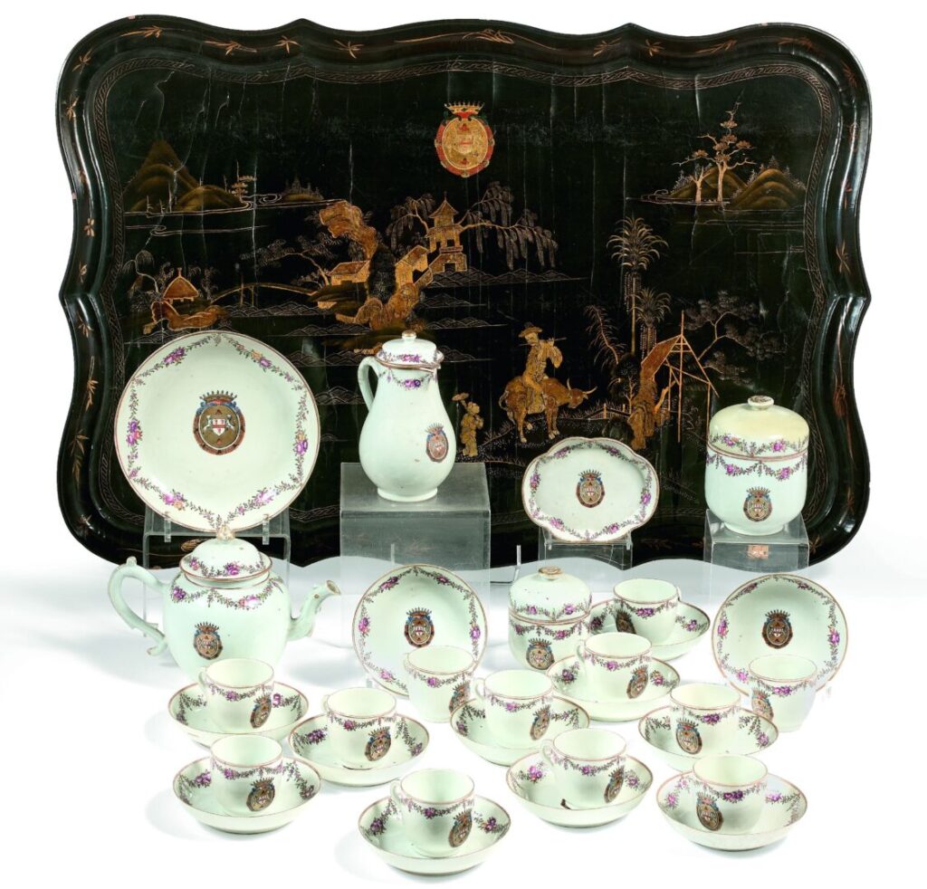 Cabaret vernis de douze tasses en porcelaine de Chine, vers 1770-1780, Musée de la Compagnie des Indes – Ville de Lorient
