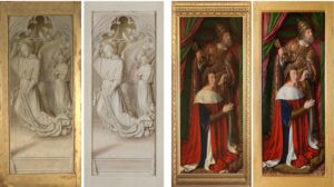 L’usage du fusain apparaît pour esquisser les mains des donateurs et des saints patrons.
