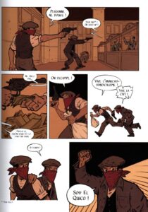 Le choix narratif des auteurs repose sur une « fuite en avant » haletante, illustrant l’engagement radical des frères Sabaté dans les « expropriations révolutionnaires » : attaques de banques pour financer la révolution et la guerre civile, libérations de camarades, récupération d’armes. Ces actions, menées au nom de la CNT-FAI, s’inscrivent dans une logique de guerre de classe contre le fascisme naissant. Dès le 18 juillet 1936, les frères Sabaté s’engagent dans le conflit, incarnant la résistance armée des anarchistes espagnols face aux troupes franquistes.