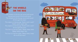 L’enfant apprend donc à travers ces chansons illustrées des mots, les chiffres et les lettres. Il découvre le drapeau du Royaume-Uni ainsi que les célèbres cabines téléphoniques rouges, les bus londoniens à étage, les gardes de la famille royale avec leurs célèbres chapeaux en poils d’ours… mais également quelques monuments comme Elisabeth Tower (à ne pas confondre avec Big Ben!) ainsi que la grande roue The London Eye.