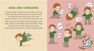 Il apprend aussi les noms de certains insectes ou animaux (spider, pig, cow…), les parties du corps humain (knees, toes, eyes, ears…).