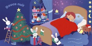 Ce petit livre accessible aux enfants dès 1 an nous plonge dans l’ambiance de Noël grâce à ses 5 chansons accompagnées de 5 scènes et 5 matières différentes pour faire découvrir aux tout-petits des textures différentes.