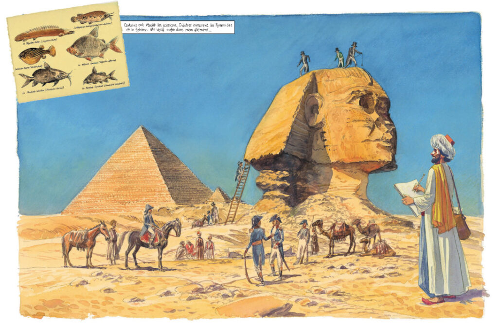 Mais l’album ne se contente pas de restituer une époque : il interroge les mécanismes de domination, d’illusion et de désenchantement. En montrant Bonaparte tentant de séduire les dignitaires musulmans et proclamant son respect de l’islam, Jacques Ferrandez dévoile une politique faite de promesses opportunistes, d’admiration sincère parfois, mais aussi de calculs politiques. L’assassinat de Kléber puis l’arrivée de Menou rappellent combien l’expédition fut marquée par l’improvisation, les rivalités internes et le fossé culturel entre Français et Égyptiens.